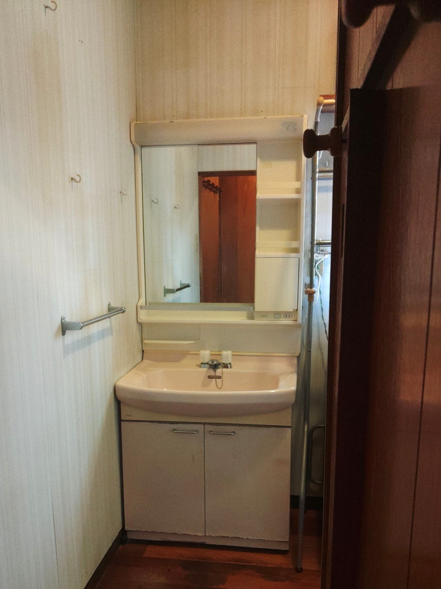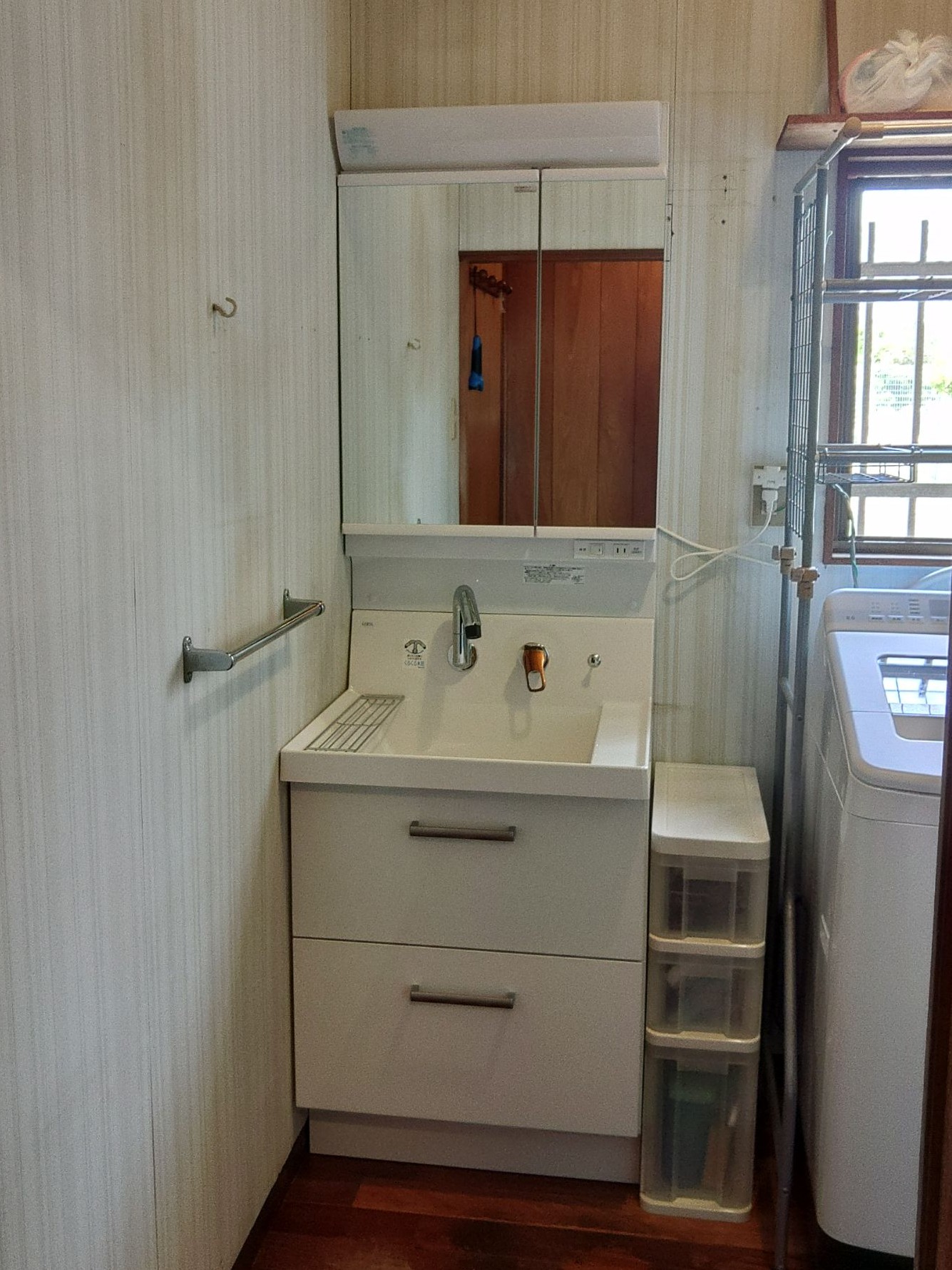 既存の洗面台は75cmでしたが収納の問題で60cmの洗面台を取付けました。